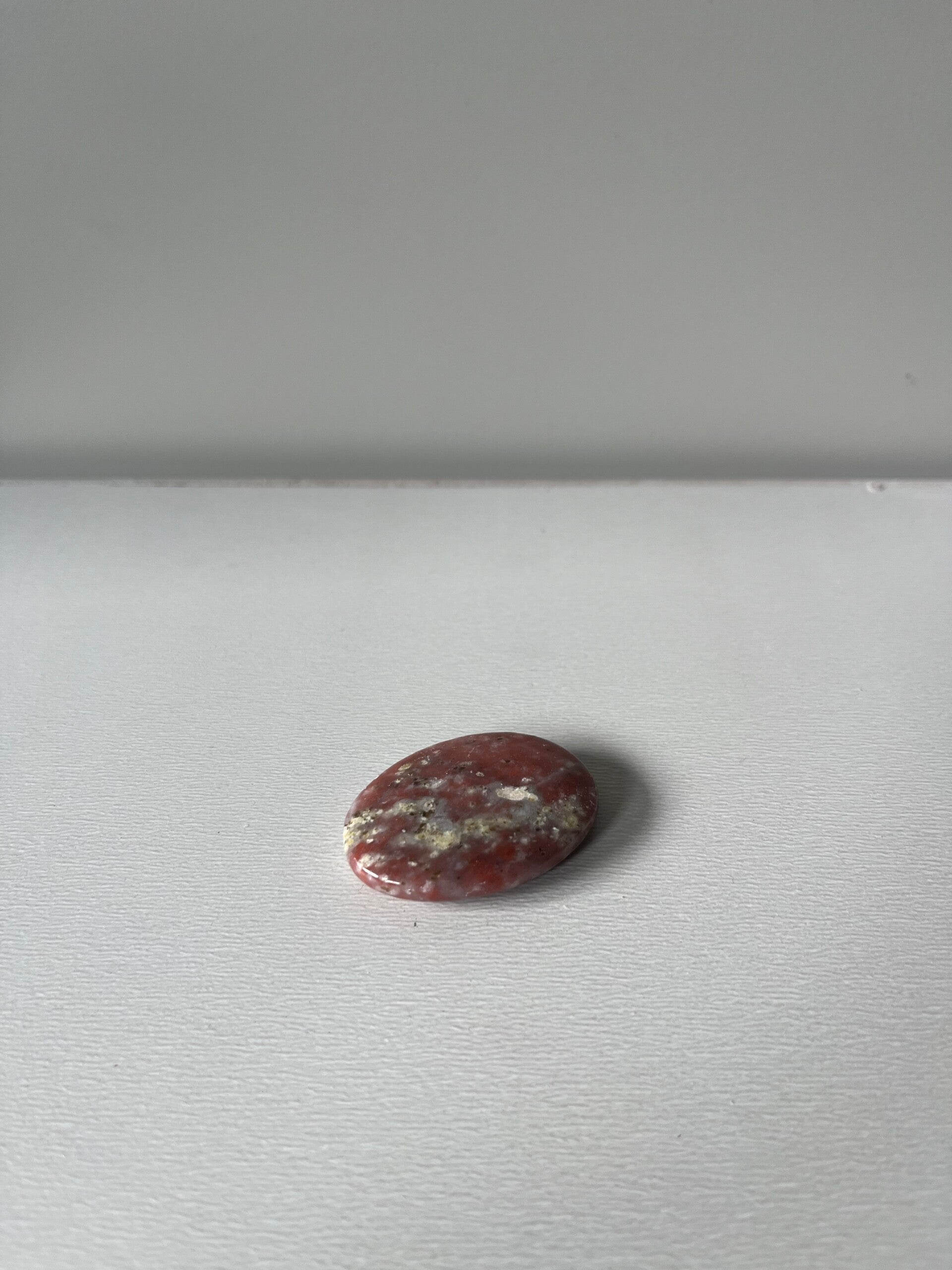 Rode jaspis is een krachtige, aardende steen die helpt om stevig in je schoenen te staan. Hij stimuleert vitaliteit, moed en doorzettingsvermogen, en geeft steun bij stress, vermoeidheid of uitdagende situaties. Deze gladde zaksteen past perfect in je hand of broekzak en is ideaal om dagelijks bij je te dragen. Rode jaspis bevordert een gevoel van veiligheid en stabiliteit, en helpt je om met vertrouwen en focus je doelen na te streven.