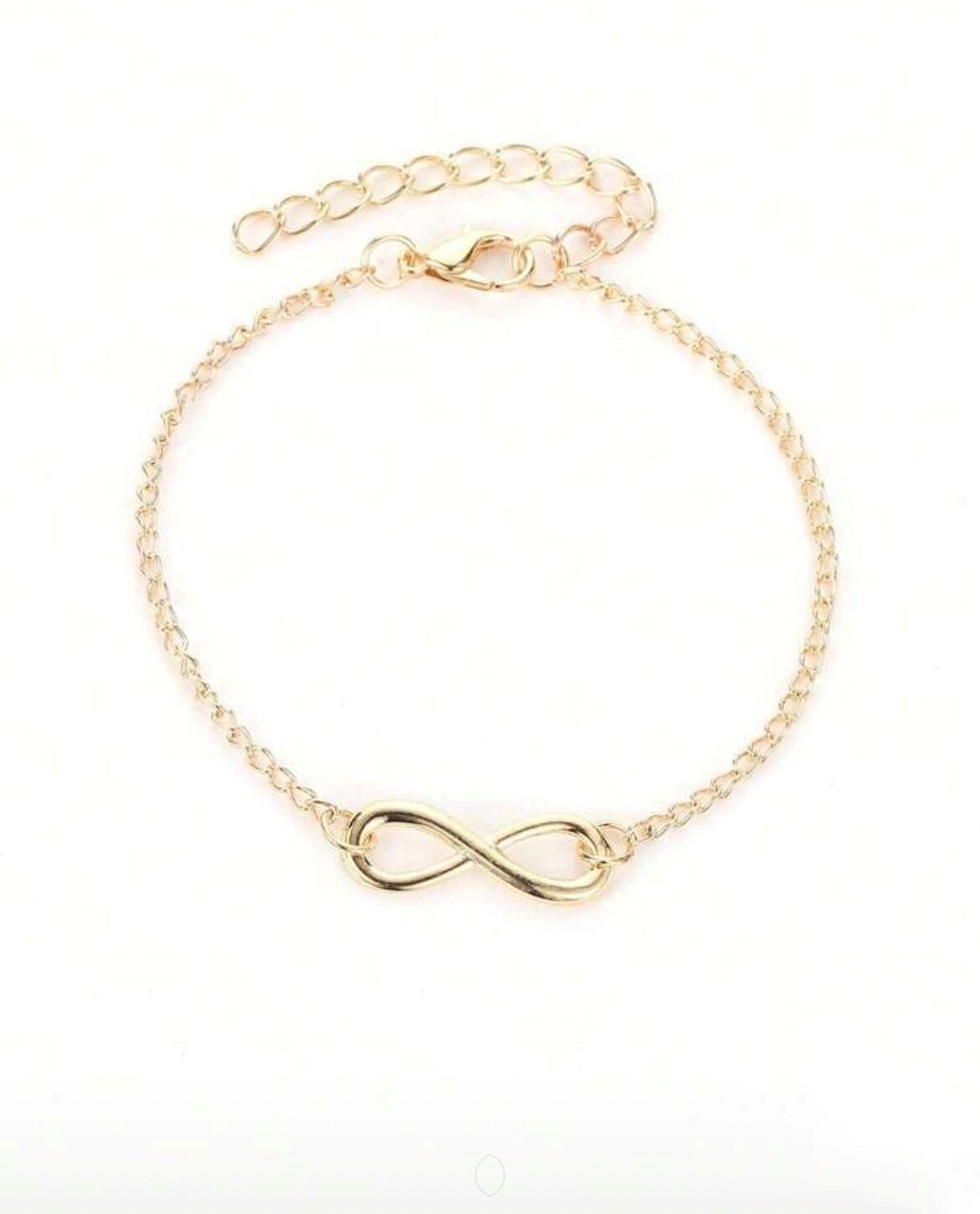Deze elegante armband van goudkleurig staal is niet alleen stijlvol, maar draagt ook een diepe symbolische betekenis. Het infinity-teken (lemniscaat) staat voor oneindigheid, eeuwige verbondenheid en de continue stroom van energie.
