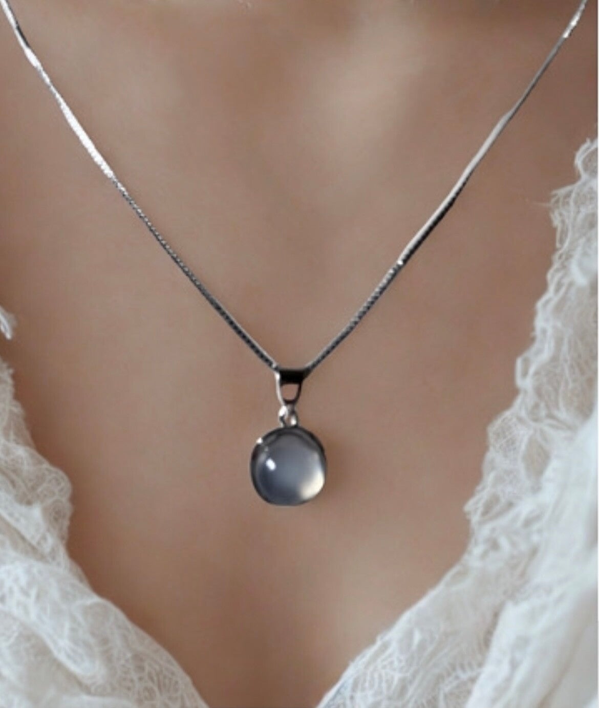 Zilveren Ketting met Witte Jade Hanger – Steen van Harmonie & Zuiverheid