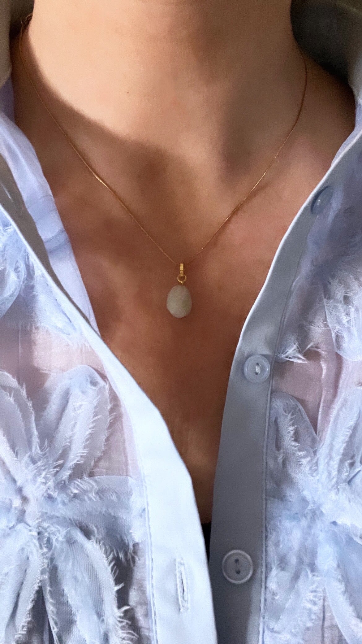 De zachte gloed maakt deze ketting tot een elegant en spiritueel betekenisvol sieraad dat kracht en sereniteit uitstraalt.