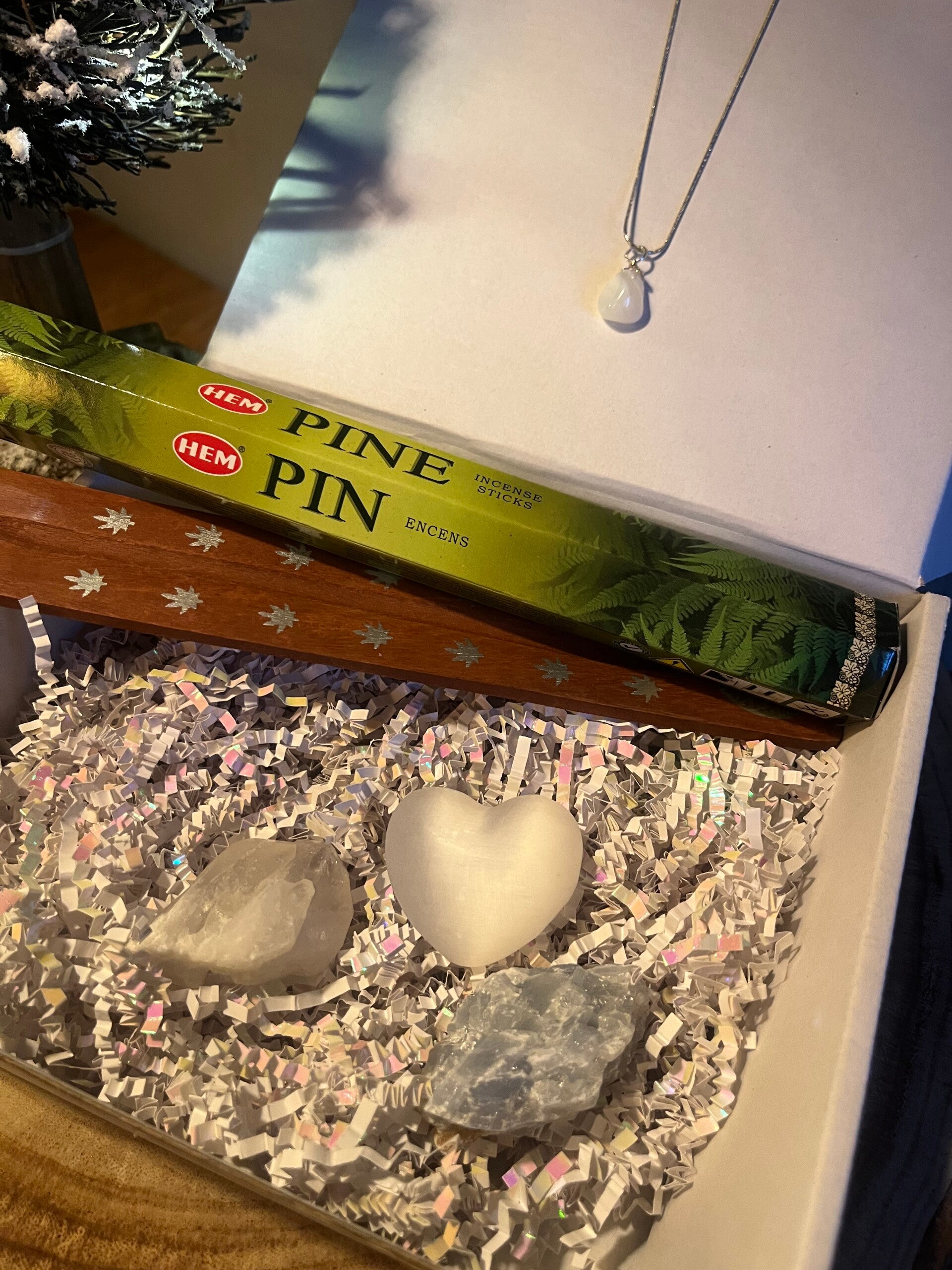 Een rustgevend wintercadeau vol zachte, kalmerende energie. Deze box brengt de stille schoonheid van sneeuw en de zachtheid van winterlicht samen. Ideaal voor wie behoefte heeft aan ontspanning, helderheid en innerlijke rust.