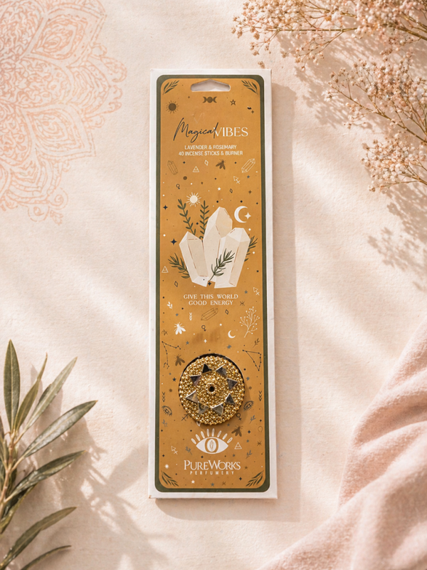 Deze stijlvolle sets zijn ontworpen om van een simpel moment een verfijnde beleving te maken. Elke set bevat 40 hoogwaardige wierookstokjes én een elegante wierookbrander met een subtiele “bling” spiegelafwerking – een echte eyecatcher in elk interieur.